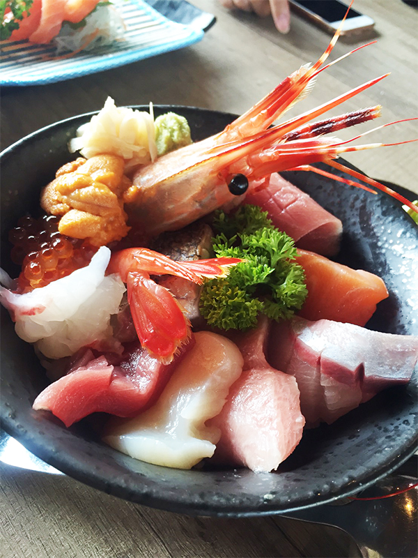 นี่เลย Donburi เมนูเจ้าปัญหา บอกเลยไม่พลาด อันนี้แล้วแต่ว่าคิดกันยังไงนะครับส่วนตัวผมชอบเมนูนี้นะ ผมชอบกินปลาดิบเป็นทุนอยู่แล้ว ความสดหรือคุณภาพของปลาถ้าคุณเป้นคนไม่ใส่ใจเรื่องนั้นปล่อยผ่านร้านไหนก็กินได้ มันแจ่มตรงปลาและกุ้ง และไข่หอยเม่นที่อยู่ในชามนี้แหละมันสดจริงและคุณภาพเรียกว่าดีงามตามท้องเรื่อง ปล. แฟนไม่กินปลาดิบ เลยจัดคนเดียวเต็มๆ ฟิน.....