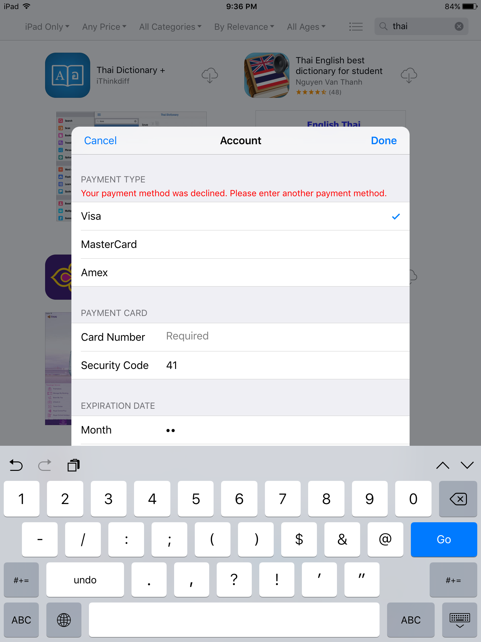 Apple ID ขึ้นว่า “Your payment method was declined. Please enter another payment method. เราจะจ่ายเงินใน apple store หรือ จ่ายรายเดือน