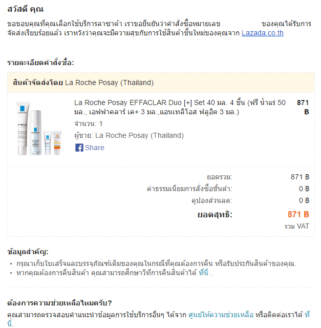 FB LAZADA : จากการตรวจสอบอยู่ระหว่างการประสานงานค่ะ