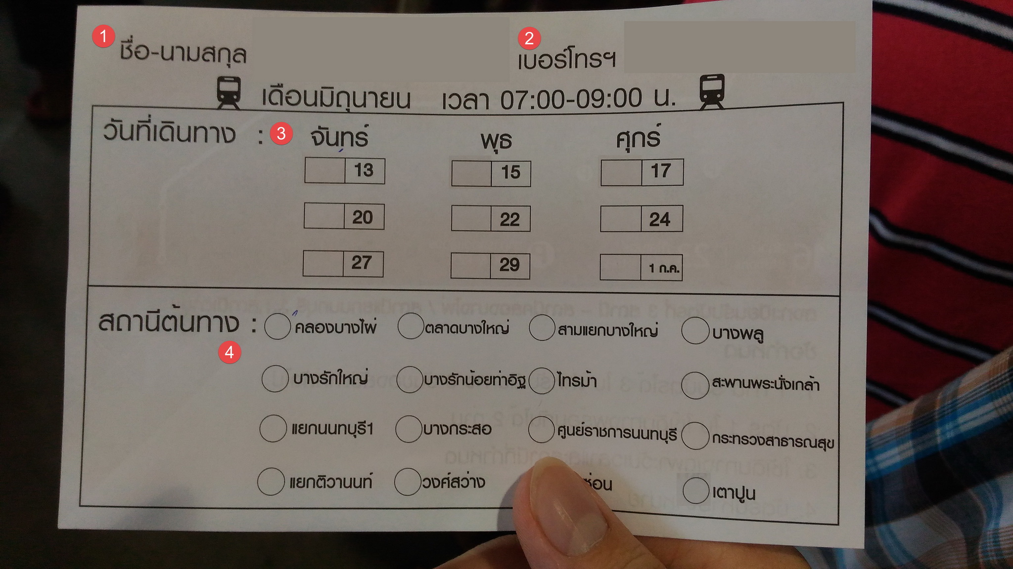 จุดแรกจะเป็นการรับใบคำขอบัตรโดยสาร ซึ่งจะมีหน้าตาแบบนี้