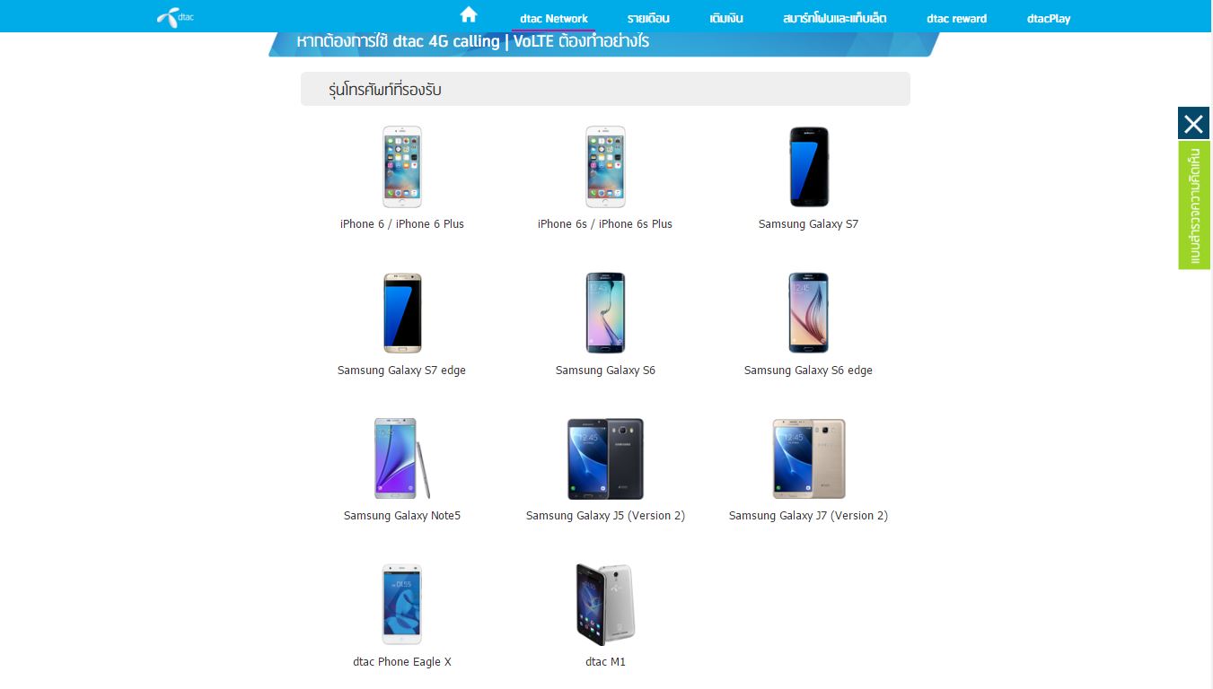 รุ่นอื่นที่รองรับ ก่อนหน้า ดูที่นี้ครับ http://www.dtac.co.th/network/4g-volte.html