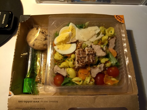 ราคากล่องนี้เอิ่มมมเท่าไรหว่าา ดูบิลแปบ 5.00€ หรือเท่ากับประมาณ 200฿ (ชิมก่อน ดูซิจะอร่อยคุ้มราคาไหม) อื้มมมมม....คุ้มราคามาก อร่อยยยยย แค่มีชีสก็ฉ่ำแล้วววว น้ำสลัดจากน้ำมันมะกอกผสมซอสอะไรกลิ่นเหมือนซอสน้ำมันงา เหมาะสำหรับมื้อเบาๆก่อนนอนจริงๆ (หราาา..แค่ชีสก็ปาไปกี่แคลล้าวววว)