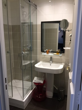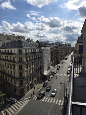 อยากจะบอกว่าห้องที่นี้ไม่ทำให้ผิดหวังจริงๆ โชคดีได้ชั้นที่5 ทำให้เปิดประตูรับลมตรงระเบียงได้ ห้องน้ำเป็นสัดส่วนดีมาก ในห้องน้ำมีกระจกแต่งหน้าด้วย มีโต๊ะนั่งทำงาน (แต่ส่วนมาก อ้วนเอาไว้กินข้าวมากกว่า) ที่ชอบที่สุดคือถ้าออกไปยืนนอกระเบียงตอนกลางคืน จะสามารถมองเห็นยอดหอไอเฟลที่เปิดไฟสว่างส่องไปส่องมาได้ด้วย