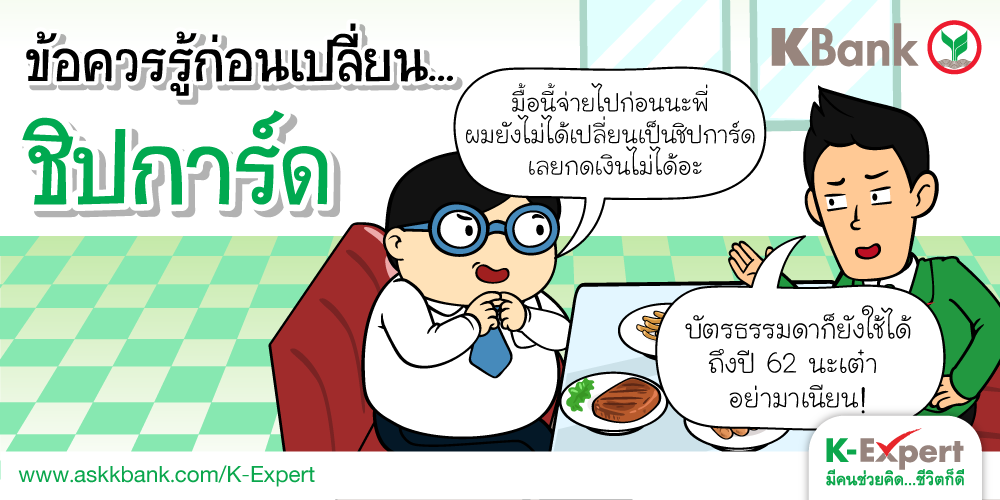 ในช่วงสัปดาห์ที่ผ่านมา ข่าวฮอตฮิตทางการเงินที่เป็นเรื่องใกล้ตัวเราและมีการพูดถึงกันมากที่สุดคงจะเป็นเรื่องไหนไปไม่ได้ นอกจากบัตรชิปการ์ดนั่นเอง เชื่อว่าบางคนอินเทรนด์ได้ไปเปลี่ยนบัตรเอทีเอ็มหรือบัตรเดบิตมาเป็นบัตรแบบชิปการ์ดแล้ว สำหรับใครที่ยังไม่ได้ไปเปลี่ยน หรือยังสงสัย ไม่ค่อยเข้าใจว่าทำไมต้องเปลี่ยน เปลี่ยนแล้วดียังไง มีอะไรแตกต่างไปจากเดิมบ้าง K-Expert ได้สรุปรายละเอียดในเรื่องนี้มาฝาก พร้อมทั้งคำแนะนำที่ควรรู้ ดังนี้ครับ