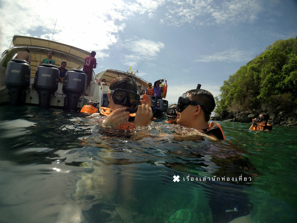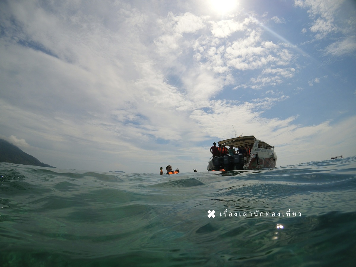 ท้องฟ้าแจ่มใสได้เวลาขึ้นเรือ ออกทะเลไปดำน้ำตื้นครับ เย้ๆ