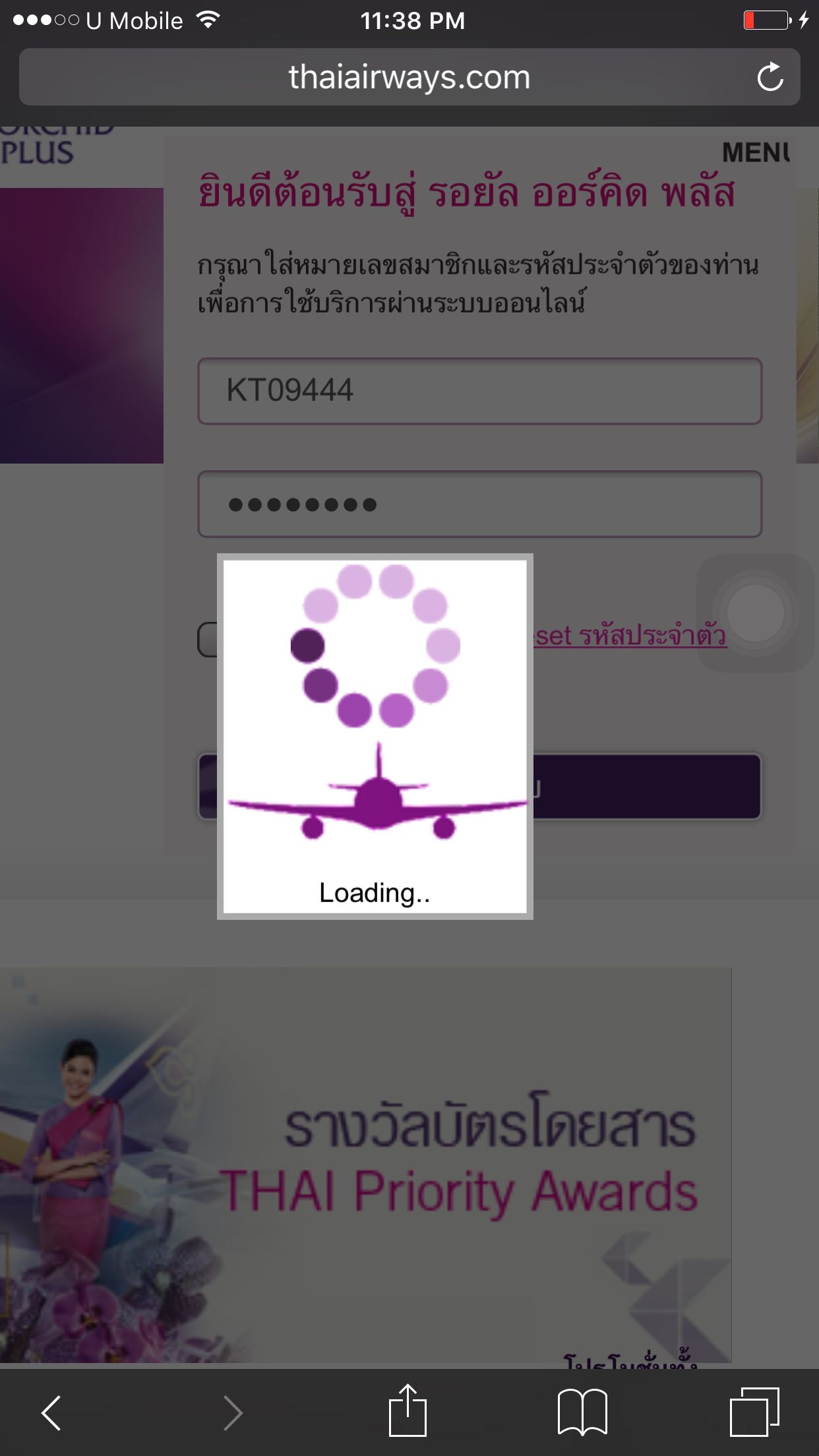 Web Login ROP ของการบินไทย เป็นอะไรรึเปล่าคะ