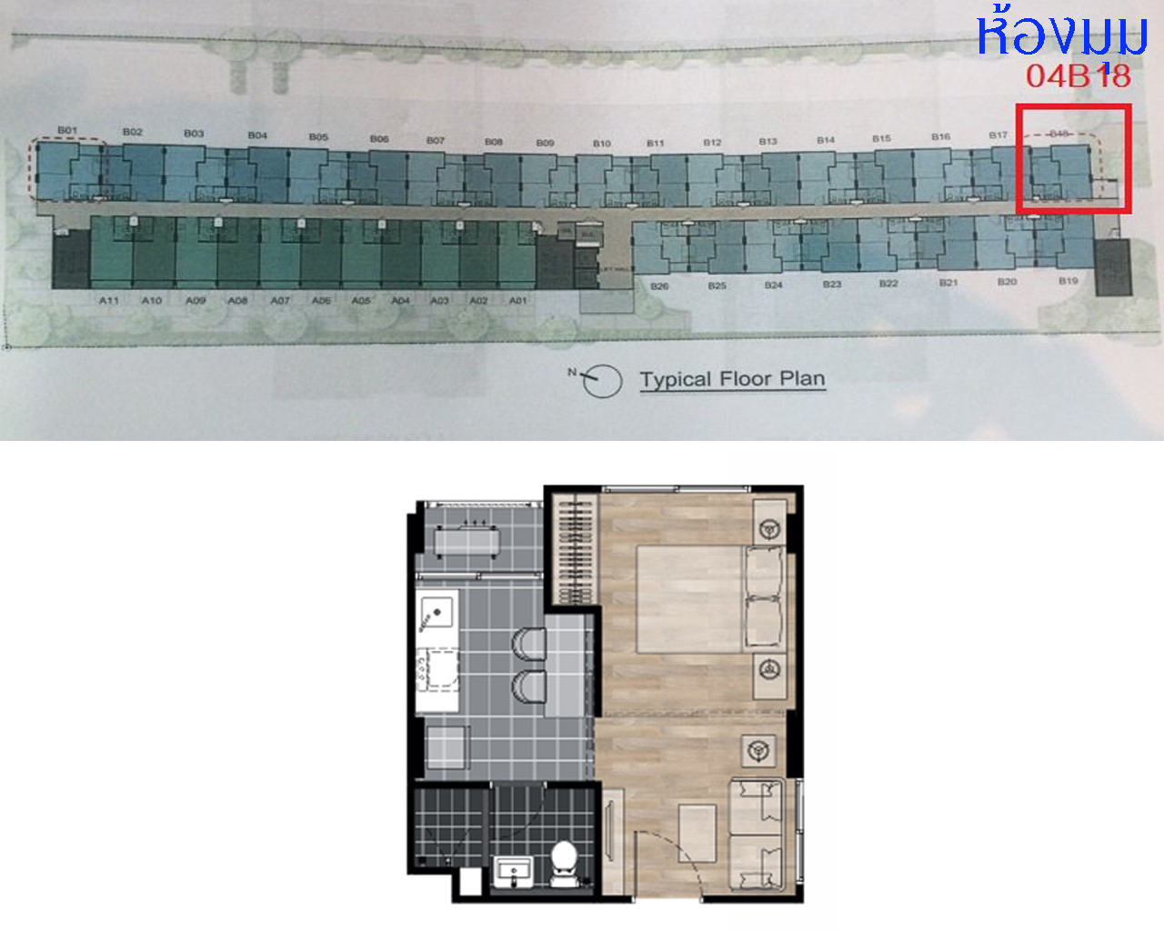 Sell 1 Bed size 28.5 SQM 4 FL Corner room that have 2 windows