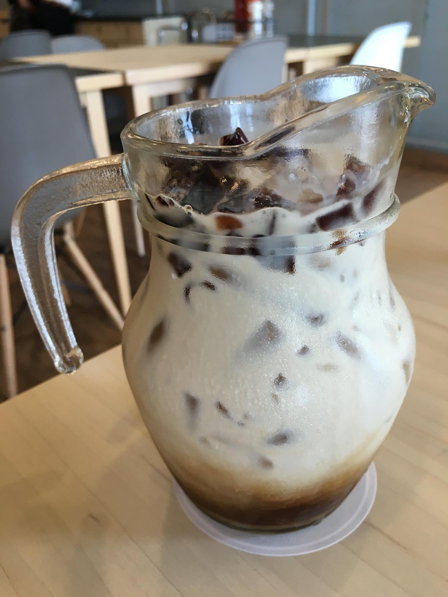 ส่วนไอ้นี่คือที่ผมสั่ง ไอซ์ลาเต้กุสโต้ ผมว่าเหมือนกินนมกาแฟแบบหวานเลยแหละ คือหวานมาก ไม่อร่อยๆ ไม่น่ากินหลังสเต็กเลย อย่างอืดท้อง