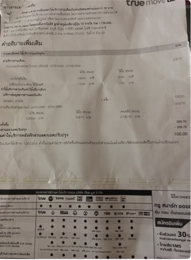 ต้องเช็คบิลค่าโทรศัพท์ทรูมูฟดีๆไม่งั้นจะเจอคิดค่าบริการเกิน