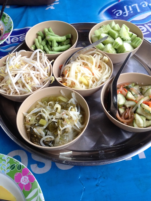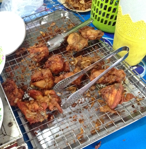 จานละ 20 บาท ไก่ทอดชิ้นละ 20 สามารถตักน้ำยาเองได้ ที่โต๊ะก็จะมีผักสด เครื่องเคียงไว้ให้บริการอยู่