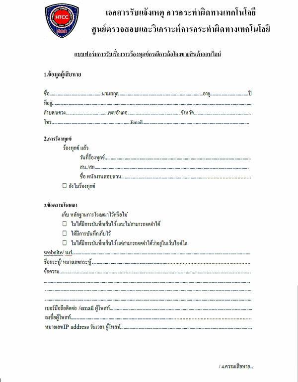 ผมจะส่งเอกสารรับแจ้งเหตุการกระทำผิดทางเทคโนโลยีเรื่องร้องทุกข์การฉ้อโกงขายสินค้าออนไลน์