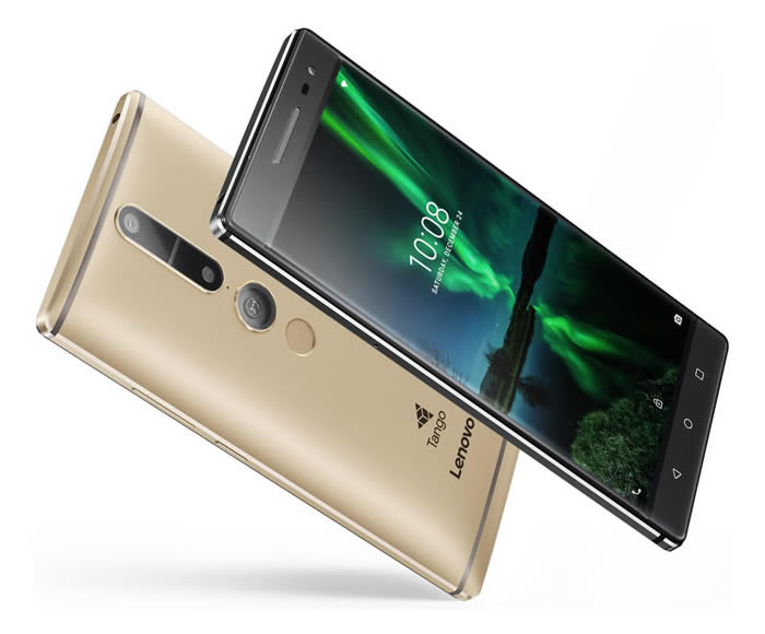 Lenovo PHAB2 Pro สมาร์ทโฟนรุ่นแรกที่มาพร้อมเทคโนโลยี Tango จาก Google ซึ่งมีคุณสมบัติที่กล้องด้านหลัง มาพร้อมเซ็นเซอร์ตรวจจับวัตถุและความลึก นำมาประมวลเป็นกราฟฟิค 3D AR ซ้อนทับสภาพแวดล้อมจริง