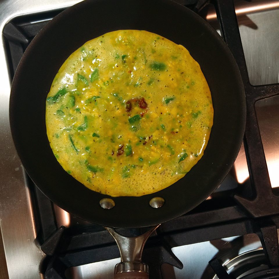 🍱 ไข่ 2 ฟอง+อโวคาโด ¼ ลูก + โหระพา + เกลือนิดนึง + พริกไทย + ซอสพริก