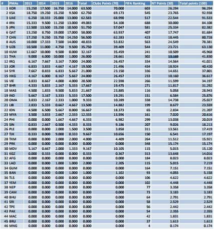จากการจัดอันดับของ AFC ล่าสุด