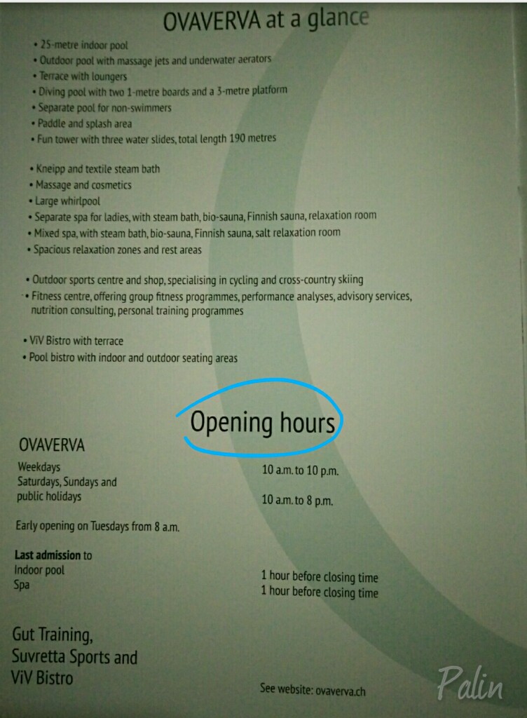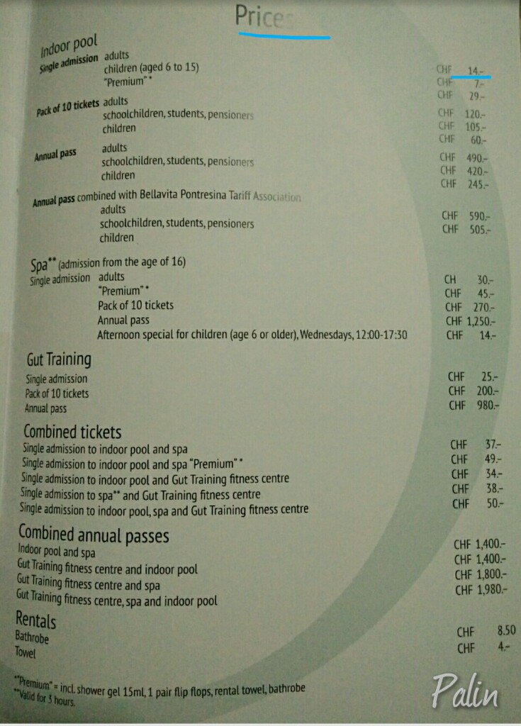 อันนี้ไว้เป็นทางเลือกสำหรับคนที่จะไปค้างคืน St. Moritz สัก 1 คืน (เหมือนเรา / คาดว่าน่าจะเป็นคนที่หมายมั่นปั้นมือจะนั่ง Glacier Express ไปจนสุดสาย) ในช่วงเวลาประมาณ 16 ช.ม. ที่นี่ ปรากฎว่าเราฟินมากกกก ทีเดียวเชียวล่ะค่ะ เพราะว่าเป็นคนชอบเล่นน้ำ (อาจจะเป็นความฟินส่วนตัวก็ได้นะคะ เหอ เหอ)