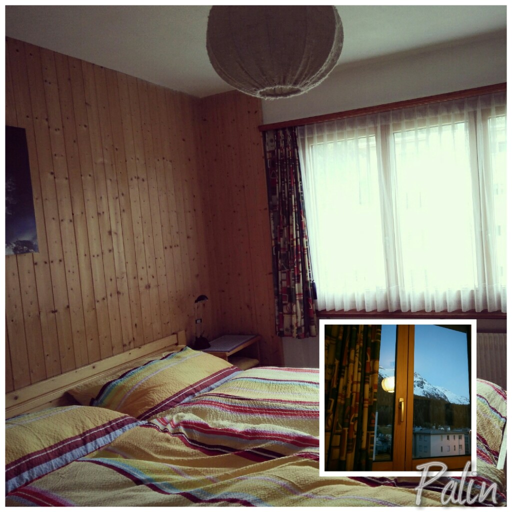 วันที่ 24 พ.ค. 59 เรากับเพื่อนนั่ง Glacier Express จาก Andermatt ไปถึง St. Moritz เวลาประมาณสี่โมง(เย็น)กว่าๆค่ะ เดินทางเอากระเป๋าไปเก็บที่พักก่อนนะคะ เรานั่งรถบัสสาย 4 ไปค่ะ ไปลงที่ป้าย St. Moritz Bad, Giand ' Alva มีบอร์ดแสดงชื่อป้ายบนรถบัสค่ะ นั่งไปประมาณ 8 หรือ 9 นาทีก็ถึง (อันนี้เซิร์ซการเดินทางจากกูเกิ้ลนะคะ แต่ละช่วงเวลาอาจจะไม่เหมือนกัน) ลงรถบัสแล้วเดินขึ้นเนินไปประมาณ 1 นาที มองทางซ้ายมือจะเห็นที่พัก พอเข้าไปถึง มีชื่อเราพร้อมระบุหมายเลขห้องและแขวนกุญแจไว้ให้พร้อม เรากับเพื่อนได้พักห้องเบอร์ 1 ราคา 1 คืน พัก 2 คน เพื่อนเราจองได้ 110 CHF ค่ะ (หารกันเหลือคนละ 55 CHF) ราคามีขึ้นมีลงนะคะ แล้วแต่ช่วงระยะเวลาการจอง