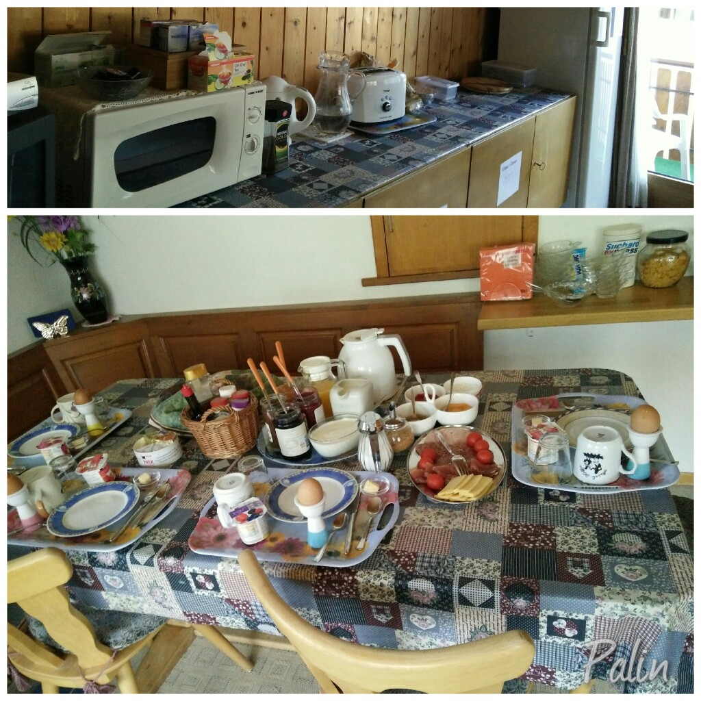 สำรวจอาหารเช้ากันสักเล็กน้อย ราคาที่แจ้งไว้ด้านบนรวมอาหารเช้า 1 มื้อ คุณภาพและปริมาณดังนี้ค่ะ (อันนี้เขาจัดไว้ให้สำหรับ 4 คน) รู้สึกจะมีขนมปังอีก 1 ตระกร้านะคะ (ในรูปเหมือนจะเห็นไม่ชัด)