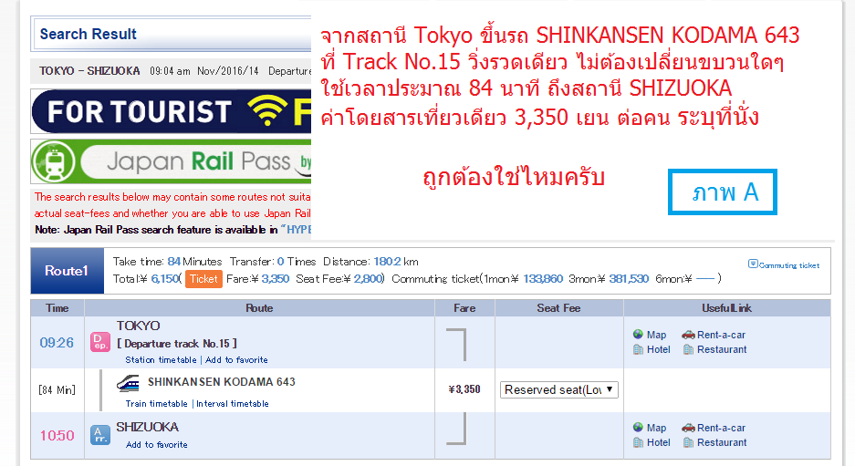 เข้าใจว่า ถ้าเริ่มต้นที่สถานี Tokyo จะไม่ต้องเปลี่ยนขบวนรถ