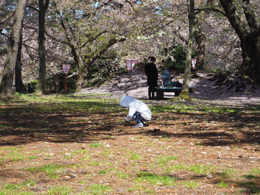 คุณลูกสาวก็สนุกกับการเก็บดอกซากุระ แต่ดูท่าทางเหมือนเก็บเห็ดนะ