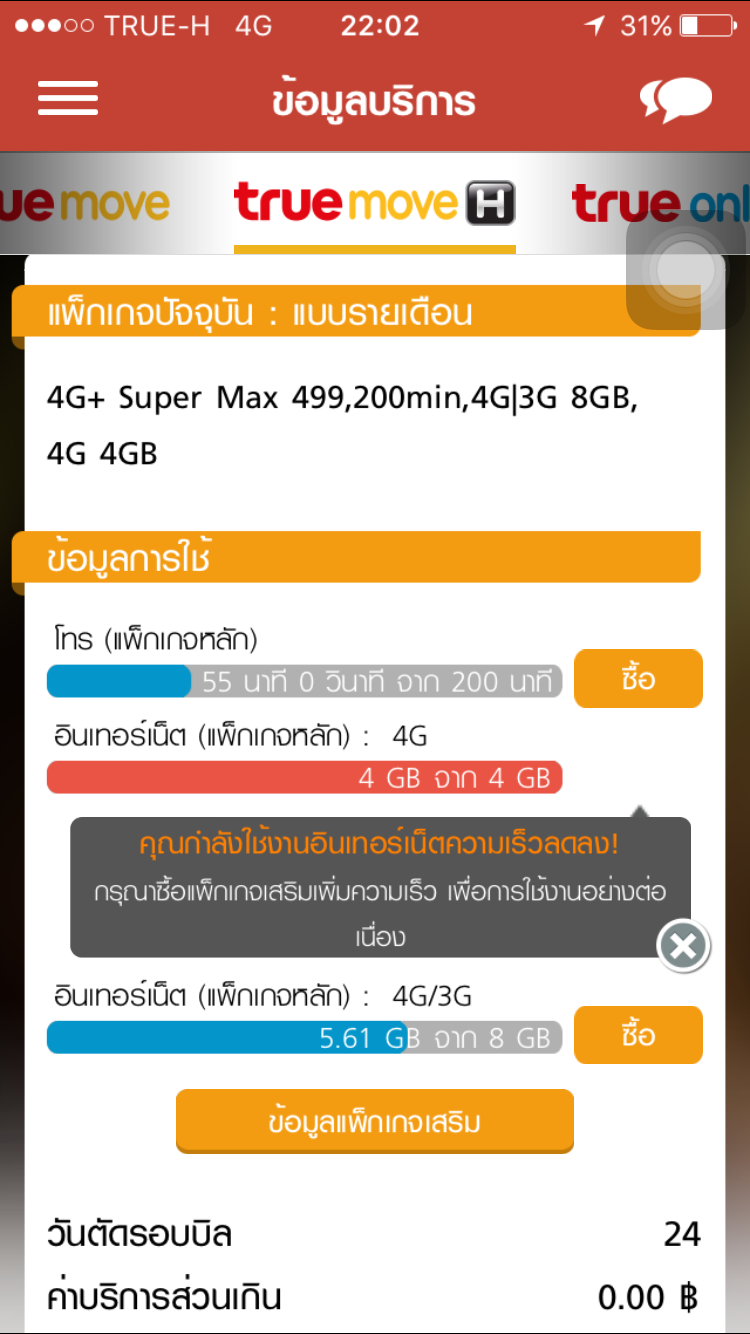 " เน็ตมือถือ True-H 4G ช้ามากกกก เหวี่ยง ต้องซื้อโปรโมชั่นเพิ่มตลอด ทุกเดือน"