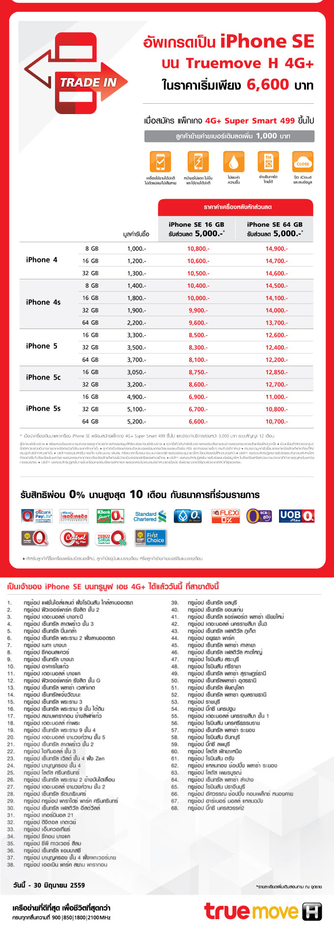 เมื่อวานนี้ ผมเห็นโปรโมชันแลกเครื่องของ iphone SE จากหน้าเวปไซต์ของ TrueMove-H แล้วเกิดสนใจเลยไปติดต่อที่สาขาใกล้บ้าน