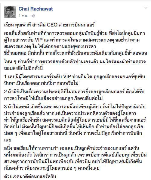 ข้าฯจะบอกเอ็งให้ ถ้านกแอร์มีนักบินไม่เพียงพอ จนทำให้ยอมรับทุกการกระทำของนักบิน แต่ไม่ห่วงความรู้สึกของผู้โดยสารล่ะก้อ อย่าทำเป็น “องค์กร”เลยฟ่ะ ไปทำธุรกิจส่วนตัวเหอะ เพราะขึนทำต่อไป มันก็มีแต่เจ๊งกับเจ๊งเท่านั้นเอง รู้ไหมฟ่ะชัย