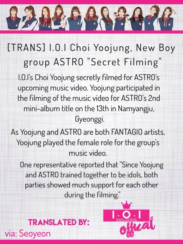 [NEWS] 160615 #아스트로 to comeback by the end of June, starring IOI's Choi Yoojung in new MV