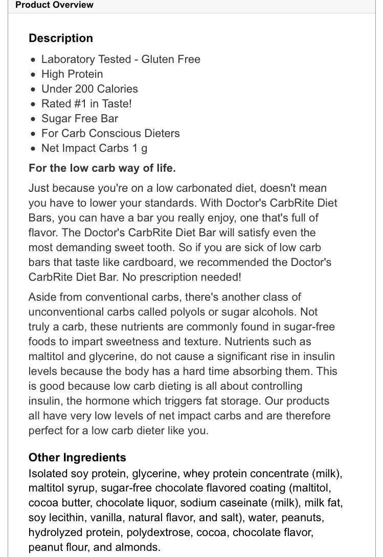 Protein bar UNIVERSAL NUTRITION, Doctor's CarbRite, Diet Bar