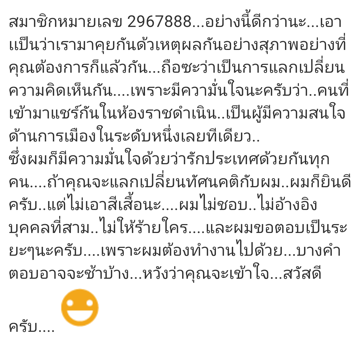 ด้วยเหตุที่ว่า มีคนกล่าวว่า เราตั้งกระทู้ที่สร้างความแตกแยก ซึ่ง เราก็ไม่รู้ว่าเขาใช้เหตุผลอะไรมาวัด