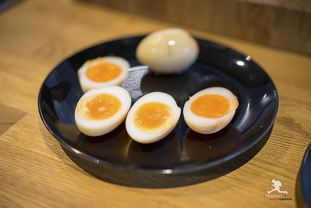 โรยด้วยต้นหอมญี่ปุ่นที่เราซอยไว้กก่อนหน้านั้น เอาไข่ต้มญี่ปุ่น วางลงบนจาน ราดด้วยน้ำต้มหมูส่วนที่เหลือลงไปนิดหน่อย ก็เป็นอันเรียบร้อย พร้อมเสริฟ!!