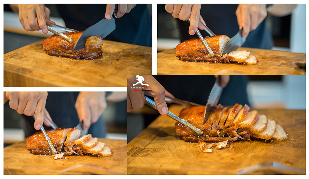 จากนั้นพักหมูไว้ก่อน (มันร้อน) น้ำซุปที่ต้มหมูส่วนทีเหลืออย่าเพิ่งทิ้งนะครับ เก็บไว้ก่อนๆ เด่ยวเราจะเอามาโรยบนเนื้อหมูตอนจัดจาน