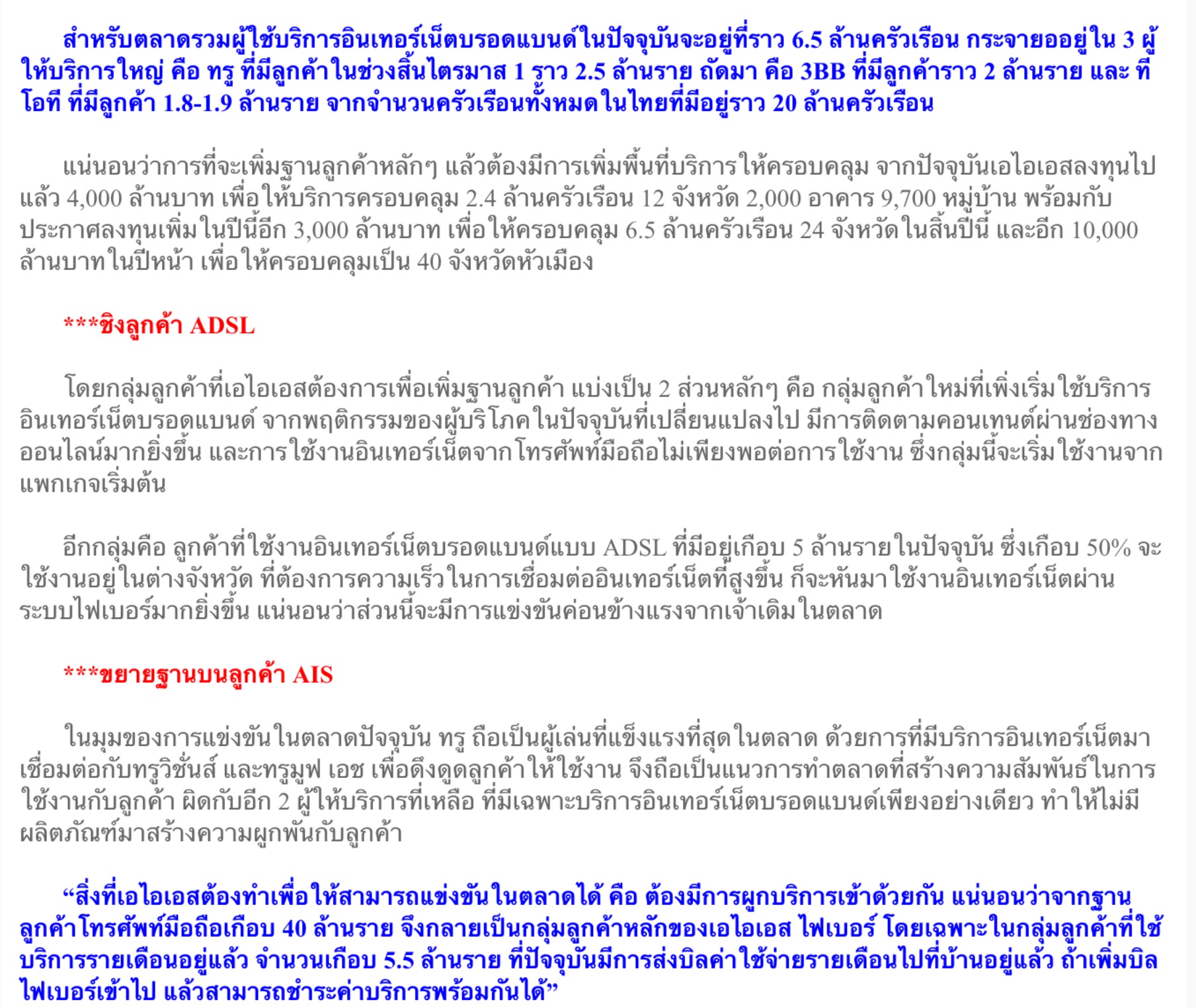 อย่างที่รู้กันว่า ais ประกาศเข้าสู่ตลาด broadband มาได้ เกือบ 1 ปีล่ะครับ ปี แรกดูเป็นปีที่ ais ลองผิดลองถูก และ ฟอร์มทีมงานขึ้นมาใหม่