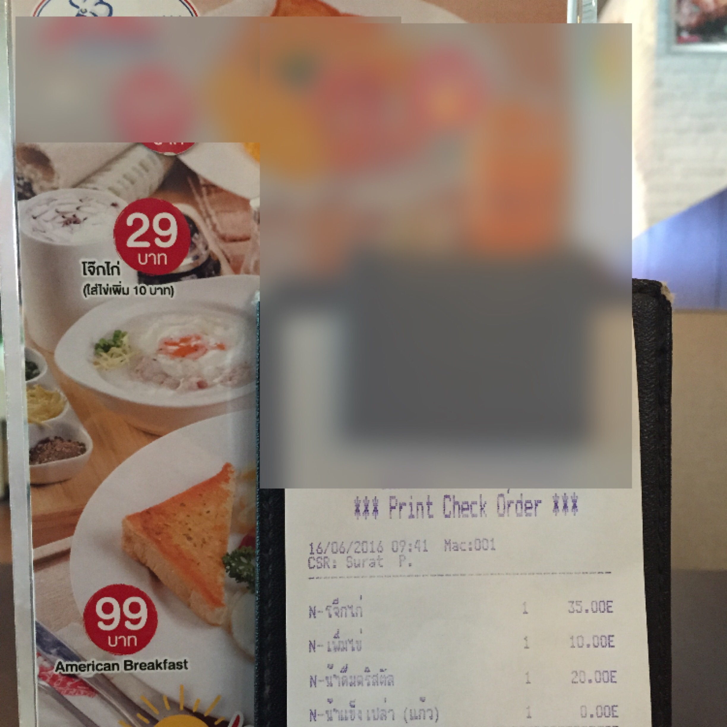 พนักงานก็เอาบิลมาวาง ก็หันไปสังเกตโจ้กไก่ 35บาทเพิ่มไข่10บาท