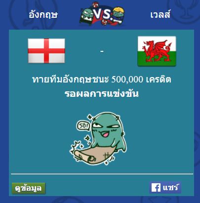 ผมว่าปู่รอยส์ ฮอดจ์สัน น่าจะมีบทเรียนจากนัดที่แล้ว ที่ไม่ยอมส่งวาร์ดี้ลงมายิงเพิ่ม ไม่รู้มันคิดอะไรของมัน จนสุดท้ายโดนรัสเซียตีเสมอ 1-1 อย่างน่าสมน้ำหน้า นัดนี้ไอ้ปู่รอยส์คนเดิมจะต้องส่งวาร์ดี้ลงมาแน่ๆ วาร์ดี้ที่พกความกระหายมาเต็มที่ จะสามารถสร้างเซอร์ไพรส์ให้อังกฤษได้ในนัดนี้ (ถึงจะยิงไม่ได้แต่ก็น่าจะมีส่วนสำคัญกับเกมส์)