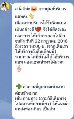 พอดีเมื่อเช้าเราได้รับข้อความจากศูนย์บริการแชท