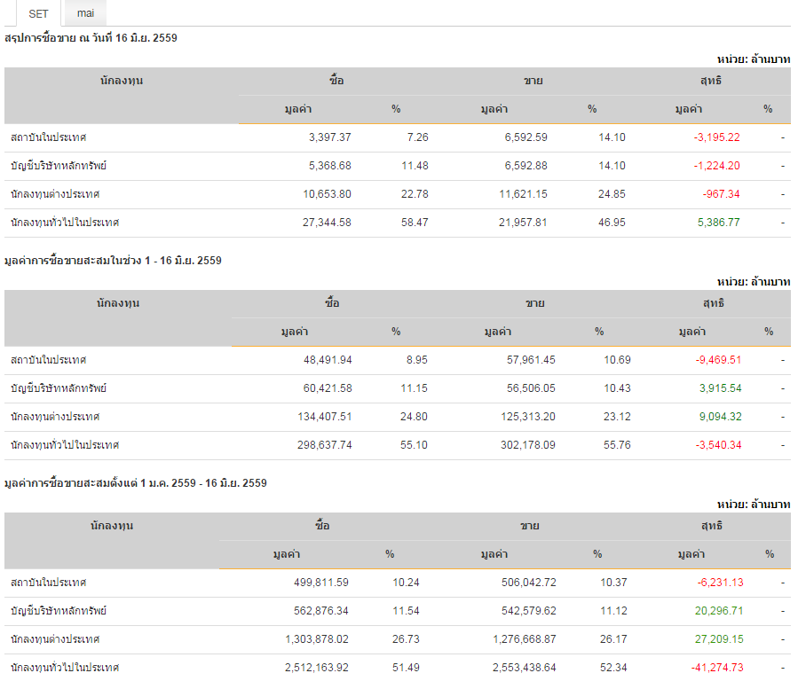 *** ปี 2016 *** เป็นยอด Net Buy(Sell) สุทธิ Year to Date ถึงวันที่ 16/11/2016 นะครับ ยังไม่จบปี ยังไม่ใช่ยอด Net ทั้งปีนะ *** แบ่งเป็น 4 กลุ่มหลัก ได้แก่ 1. ต่างชาติ 2. กองทุน 3. โบรคเกอร์ 4. รายย่อ