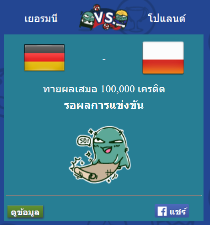 แทงเยอรมันชนะ 1,000,000 เครดิต ควรจะได้เครดิตประมาณ 300,000 เครดิต (ไม่รวมทุน) แทงเสมอ &n
