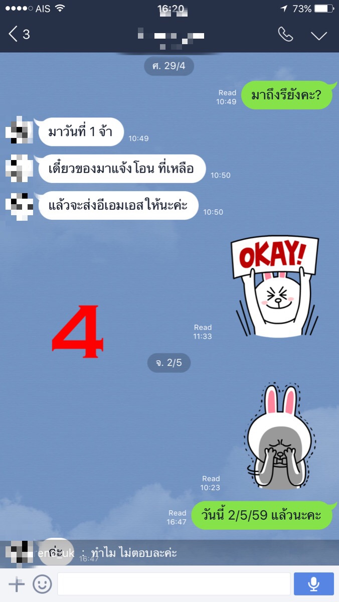 เราก็ทวงว่า “ไหนบอกว่าจะมาถึงก่อนวันที่ 1/5/59”