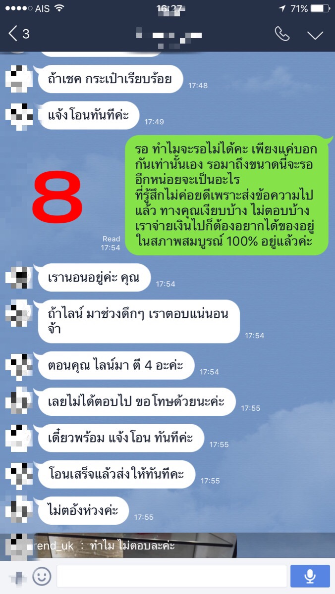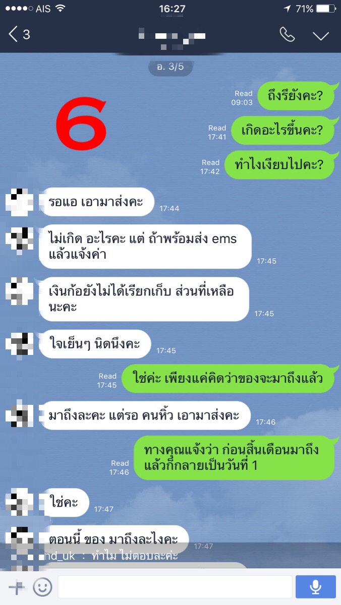 วันที่ 8/6/59 รับปากส่ง แต่ก็ไม่ส่ง
