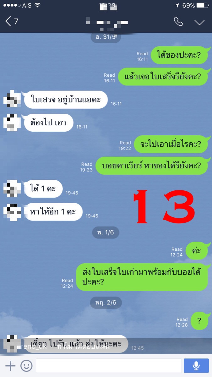 วันที่ 31/5/59 ถามหาใบเสร็จใบแรก ร้านบอกอยู่ที่บ้านแอร์