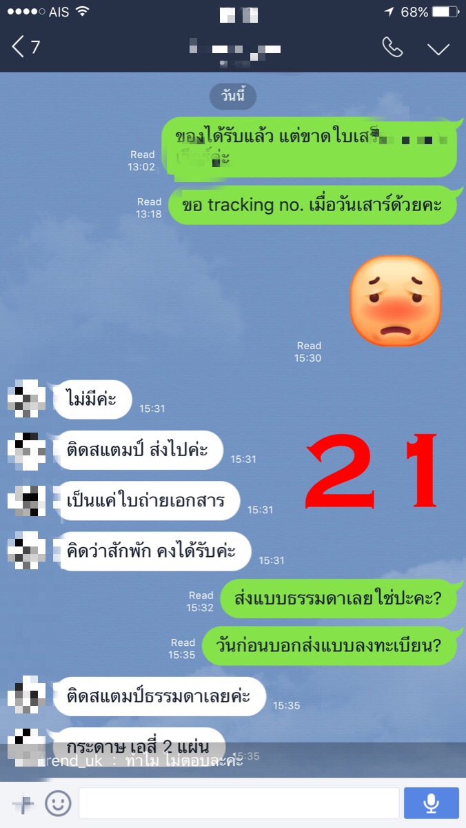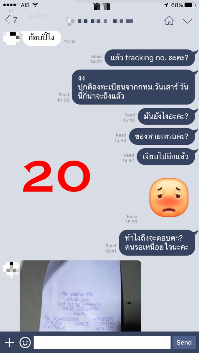 วันที่ 11,12/6/59 ตาม Tracking no. อ่านแล้วไม่ตอบในทีแรก
