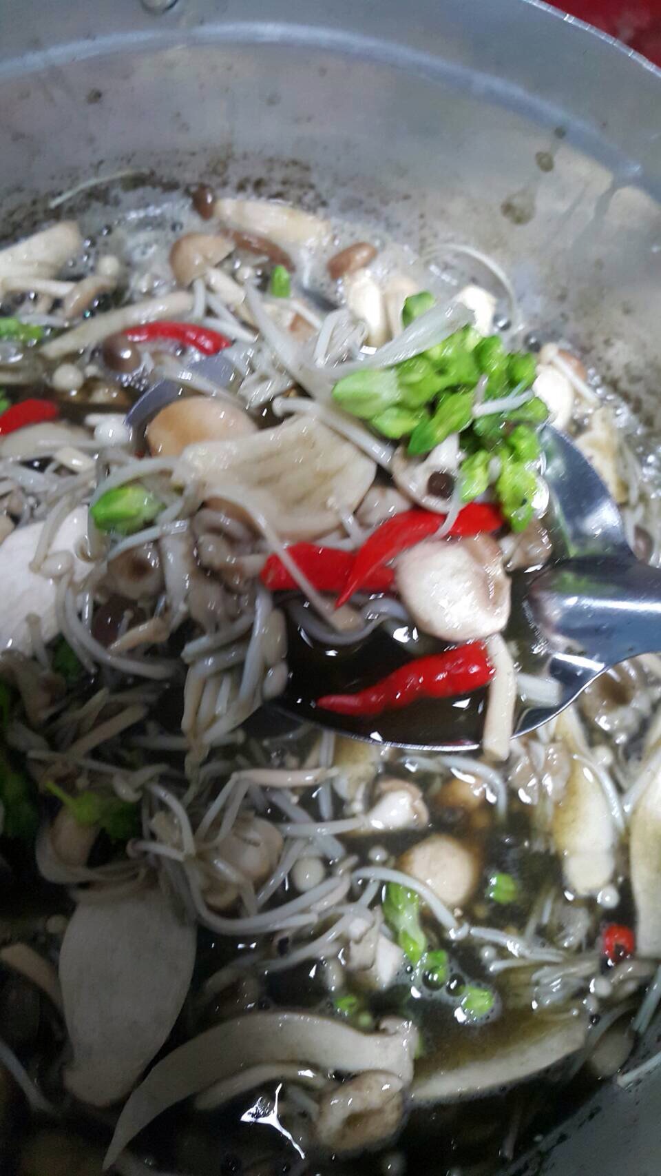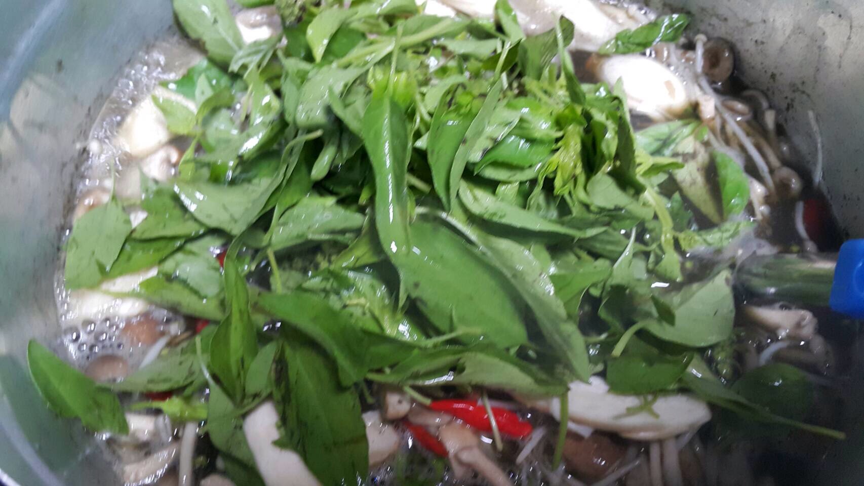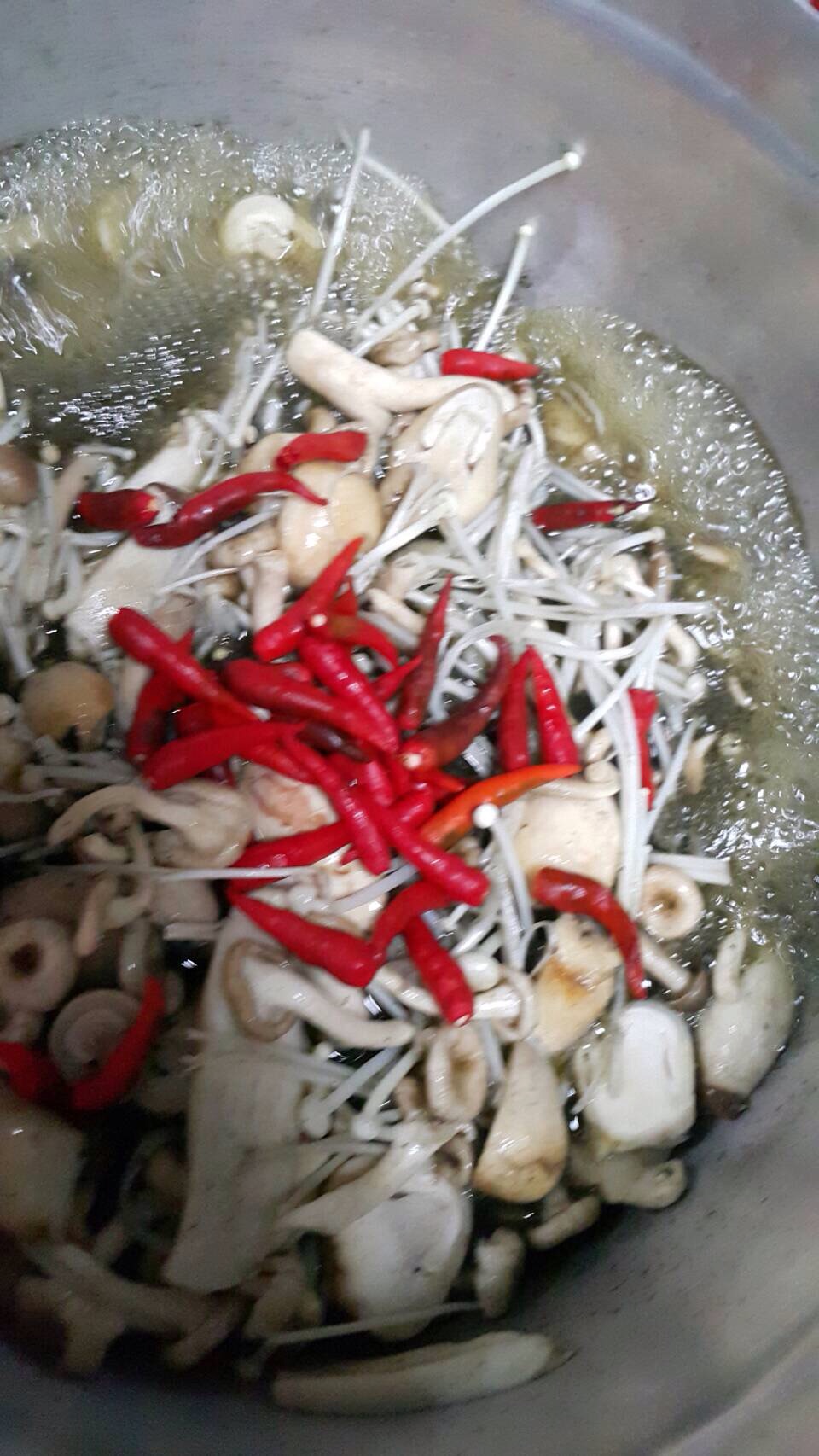 แม่ขาาาา น้ำย่านางเดือดแล้วใส่เห็ดหมดเลยหรอ พอแม่ตอบว่าใช่ เราก็โยนเห็ดใส่ไปเลยยย