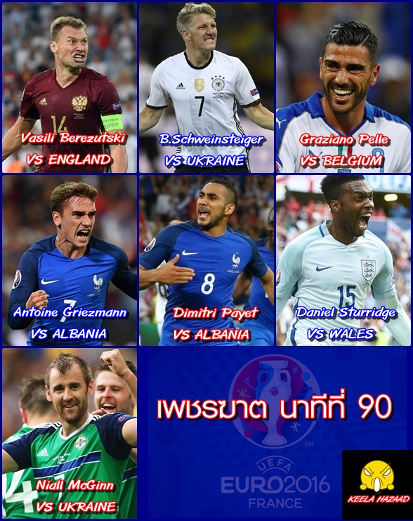 ยูโรหนนี้ยิงนาทีที่ 90 กันเยอะทีเดียว คิดว่าประตูของใครสวยที่สุดใน 7 คนนี้