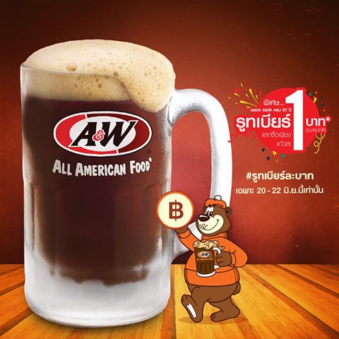เราได้ข่าวมาว่า A&W กำลังจะจัดโปรซื้อรูทเบียร์ในราคา 1 บาทแหละ รายละเอียดก็ตามนี้เลย