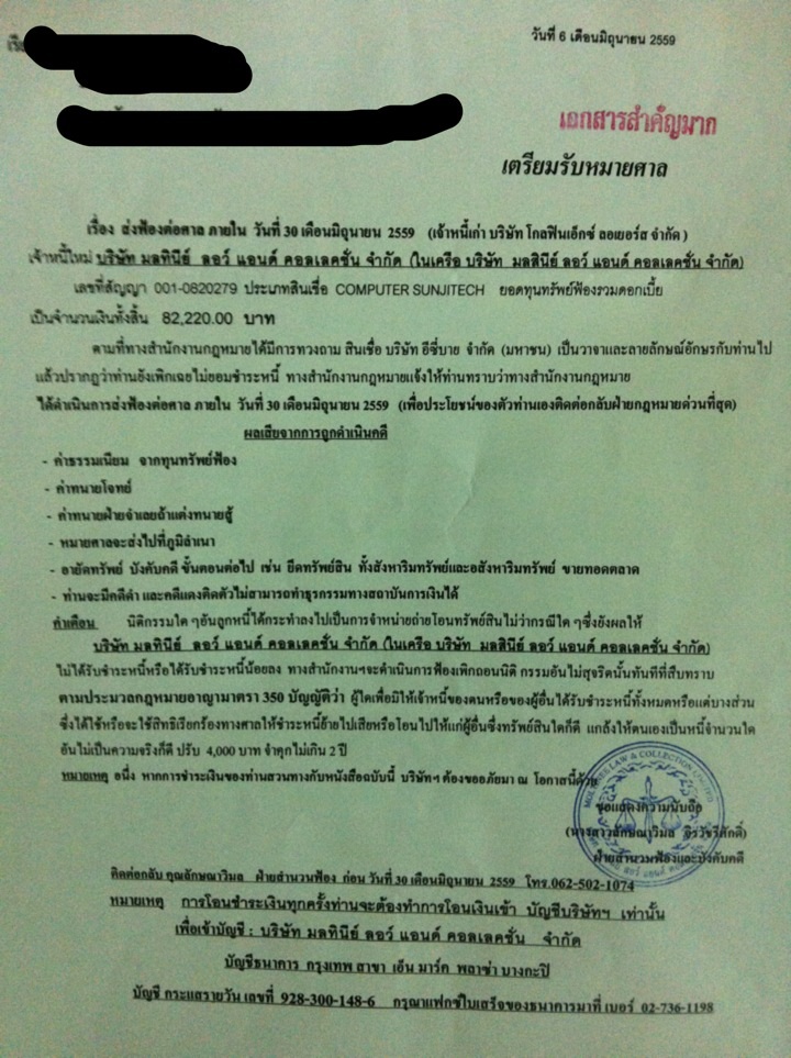 ได้รับจดหมายนี้ค่ะ อยากปรึกษาค่ะ จะทำยังไงต่อดี อายุความขาดมั้ยค่ะแบบนี้