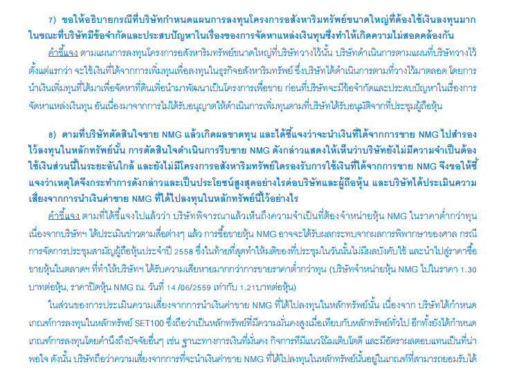 เอาเฉพาะปี 2559 ปีนี้ไม่นับผลงานที่โดดเด่นในปีก่อนๆเป็น 100 เรื่อง แค่นี้คนที่ขี้เกียจอ่านหนังสือก็ไม่อยากอ่านแล้ว แต่ผมพยายามสรุปเนื้อหาให้ ดังนี้ เนื่องจาก ตลาดหลักทรัพย์แห่งประเทศไทยเป็นห่วงบริษัทนี้มากจึงต้องซักถามสาเหตุเกิดจาก ความเป็นห่วงจริงๆ