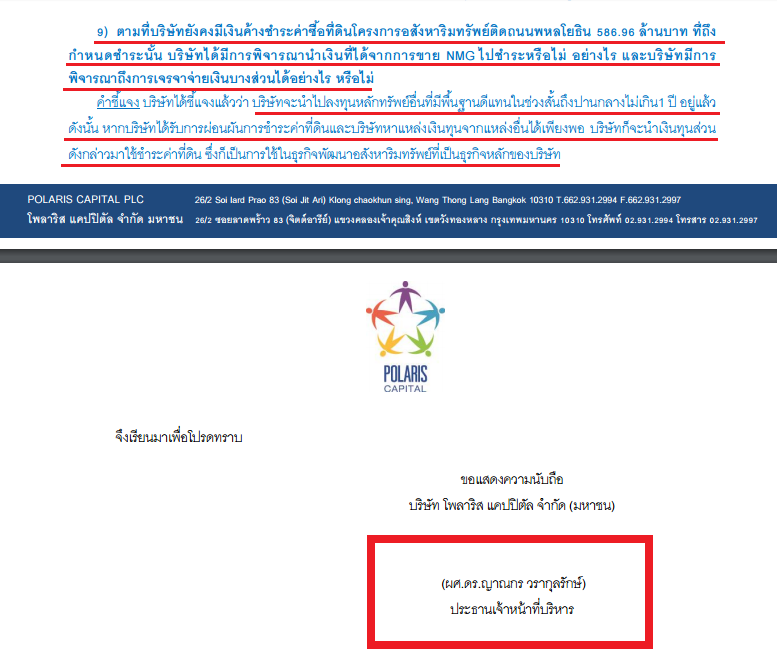 อ่านก็ขำ ก.ล.ต. ให้ POLAR ชี้แจง และไม่อนุญาตให้ขายหุ้นเพิ่มทุน PP POLAR ก็เอาเอกสารการจัดสรรหุ้นเพิ่มทุน....เอามา ไฮไลท์ข้อความ ส่งกลับมา คงบอกทำนองว่าก็ตอบไปแล้วไม่เห็นหรือ ไฮไลท์ข้อความสีเหลืองให