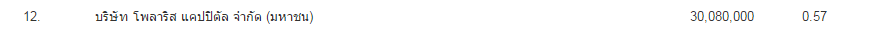 มีบริษัทไหนที่รวยกว่า POLAR ไหม บริษัท โพลาริส แคปปิตลั จํากดั (มหาชน) (“บริษัท”) ขอเรียนให้ทราบว่า บริษัทได้ดําเนินการจดทะเบียนต่อกรมพัฒนา ธุรกิจการค้า กระทรวงพาณิชย์โดยเปลี่ยนแปลงทุนช ํ