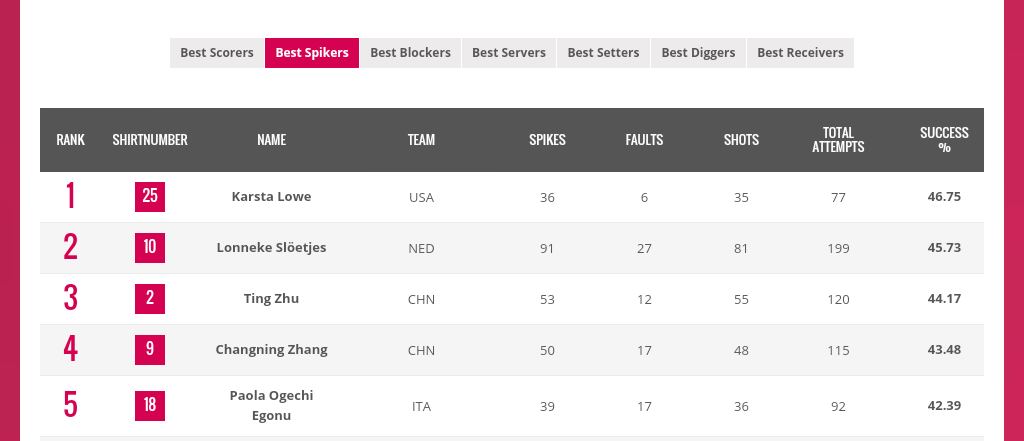 Kasrta Lowe Opp (27, 194 cm)เชื่อว่าหลายคนที่ติดตามวอลเลย์บอลน่าจะรู้จักเธอคนนี้เป็นอย่างดี กับมือตบบีหลังมือซ้ายทีมชาติสหรัฐฯ ที่เดบิวท์ในรายการ World Grand Prix 2015 และคว้ารางวัล MVP ได