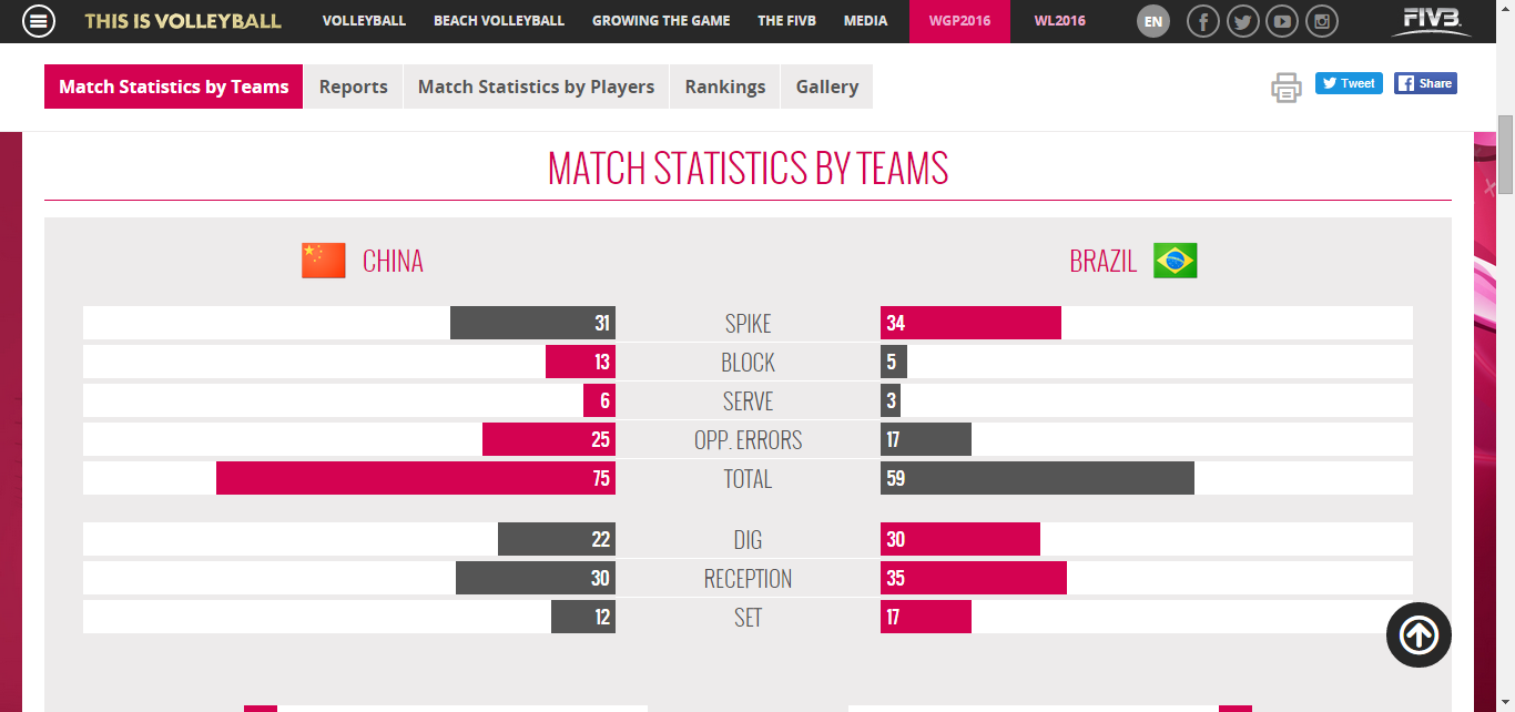 สถิติ WORLD GRAND PRIX 2016 [[ BRAZIL VS ITALY ]]